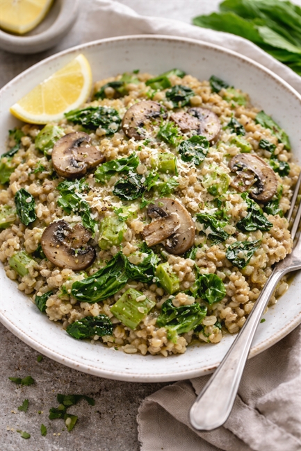 A vibrant, seasonal twist on risotto using British-grown wholegrain Flanders wheat instead of rice. Nutty, creamy, and packed with spring greens.