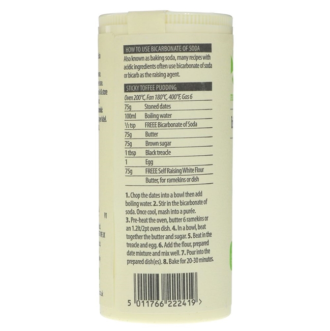 Bicarbonate of Soda is a home baking raising agent and a household cleansing friend. It can be used instead of baking powder and will help dough to rise. This product is Coeliac UK and Kosher certified.