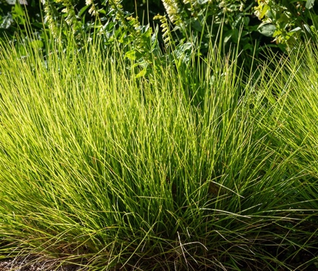 A neat, clump-forming grass with soft, yellow-green leaves that stay attractive for most of the year. In late summer and autumn it produces small, subtle flower heads that move gently in the breeze. Easy to grow and very tidy, it’s perfect for borders, gravel gardens, or planting in groups for a natural look.