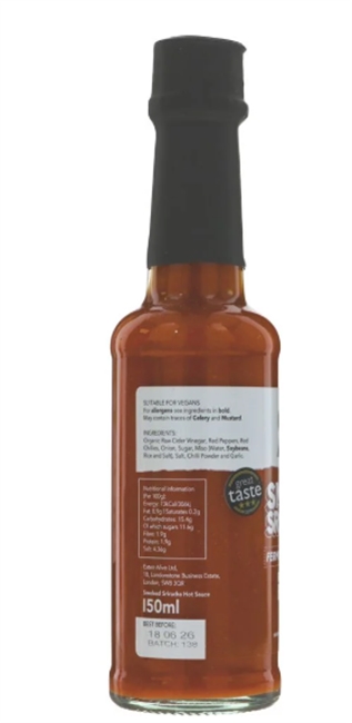 The Alive! range of fermented chilli sauces are the first to be all natural, raw and bio-live. It's Alive! - Smoked Sriracha won Best New Food Product at The Natural and Organic Product Awards. Hot and sweet peppers, smoked then slowly fermented with lots of garlic. This deep and tangy sauce is moderately spicy - perfect for splashing all over everything really! Deep and tangy, though the freshness of the chillies and other vegetables is not lost. The smoke and sweetness balance the heat nicely for a mild and versatile finished sauce. Eaten Alive founders Pat & Glyn were top restaurant chefs with a passion for the complex flavours of fermented foods. This passion, combined with the benefits of eating live food, lead them to start Eaten Alive in 2016 a truly Health-Foodie brand. Eaten Alive products continue to win multiple awards for flavour and innovation every year.