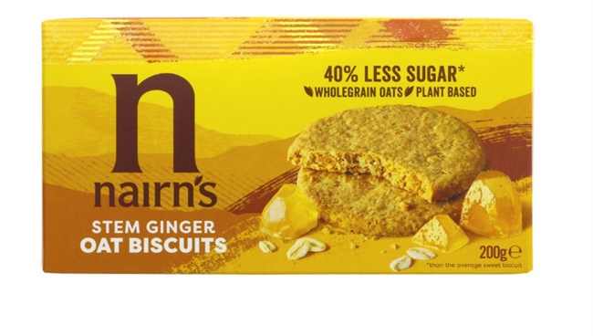 Wholegrain oats (68%) brown sugar sustainable palm oil stem ginger (6.4%)(stem ginger, sugar) dietary fibre(inulin) ground ginger partially inverted refiners syrup; lyles golden syrup raising agents (ammonium bicarbonate sodium bicarbonate) barley malt syrup sea salt