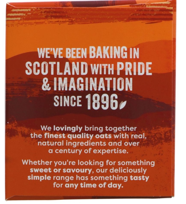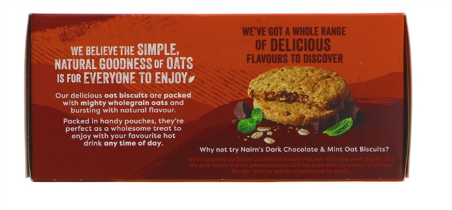 Salted Caramel the perfect sweet-but-not-sweet partner to our wholegrain oats. Buttery caramel fragments mingle with just a sprinkling of sea salt in our signature oat biscuit for a delicious bite with exactly the right level of crunch. They may taste indulgent but our Salted Caramel Oat Biscuits actually contain 40% less sugar than other brands* and like all our Oat Biscuits they're available in useful pouches of five (with four packs in a box) so keep some handy for when you need an oat-fuelled slow release energy boost.