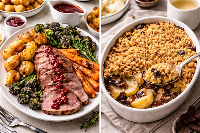 • Roast Venison with Redcurrant Sauce, Pear & Chocolate Crumble