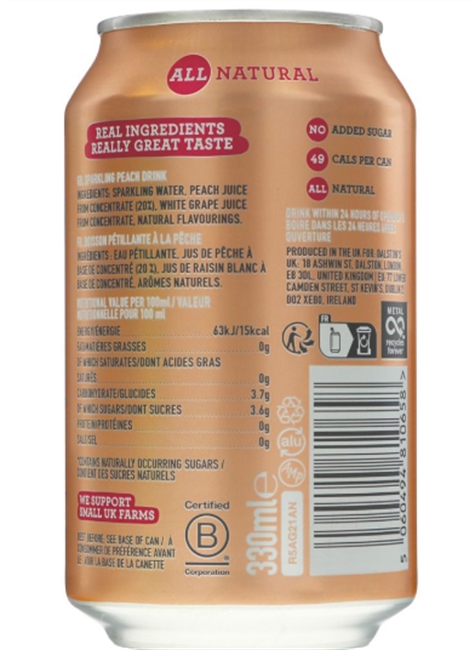 Sparkling water, peach juice from concentrate, white grape juice from concentrate, natural flavouring.