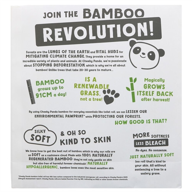 A soft, luxurious quilted FSC 100% sustainable Bamboo toilet roll, which hasn't been chemically lightened; thus retaining it's natural colour