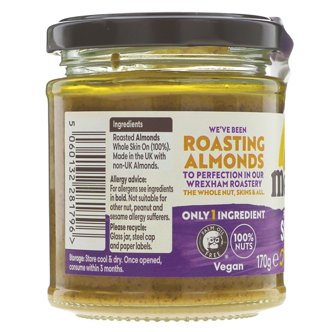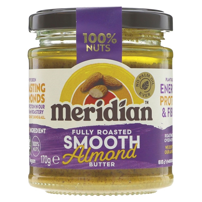 Smooth Almond Butter with salt (170g) is made using 100% almonds. Each almond contains around 20% protein and are low in saturated fat.