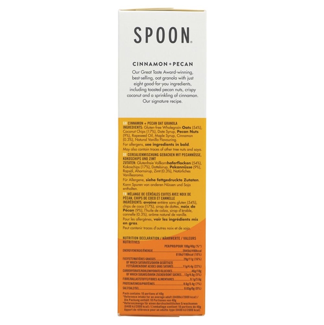Welcome to our award-winning oat granola with only nine simply moreish ingredients. heart-healthy pecans, crispy coconut and a sprinkling of super-duper cinnamon to name but a few.